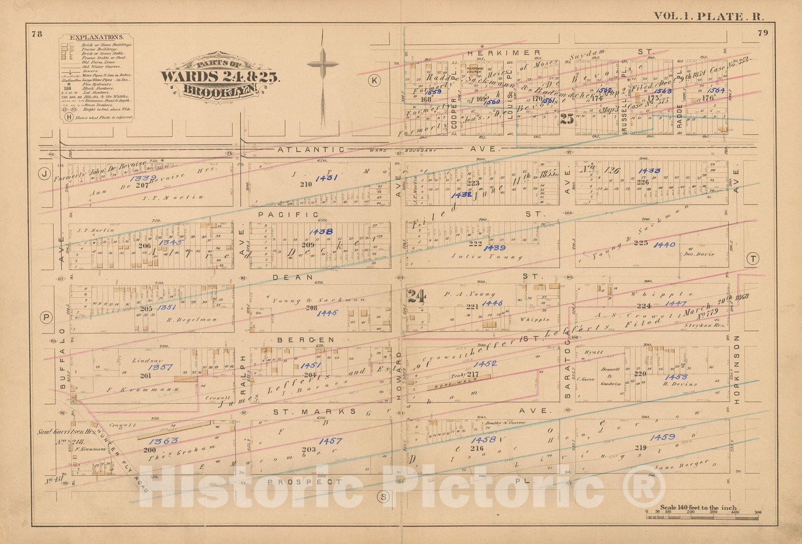 • .Historic Map : Atlas of Brooklyn Vol. 1, Brooklyn 1880 Plate R , Vintage Wall Art