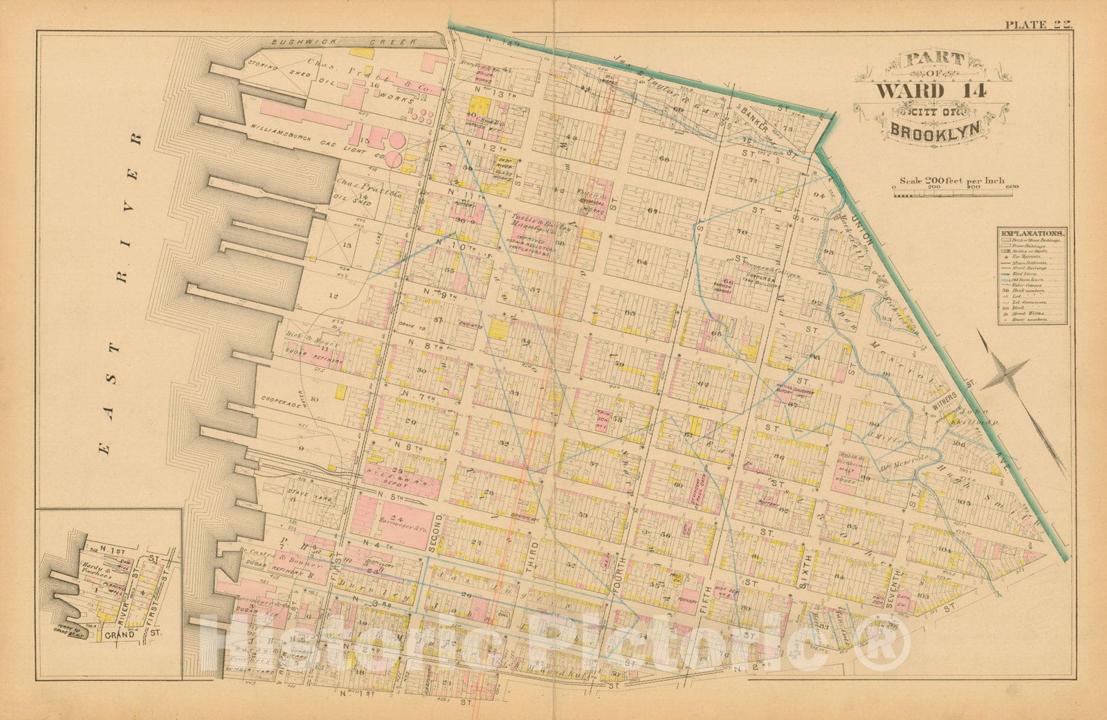 • .Historic Map : Atlas Entire City of Brooklyn Complete in One Volume, Brooklyn 1880 Plate 022 , Vintage Wall Art