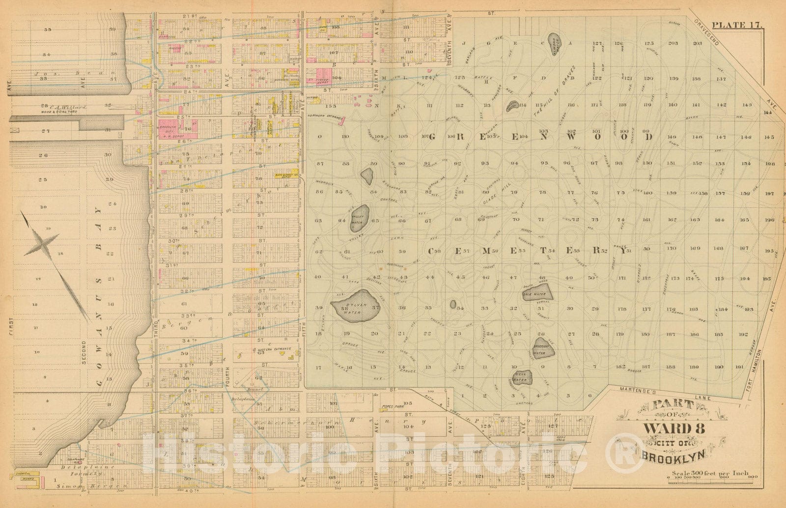 • .Historic Map : Atlas Entire City of Brooklyn Complete in One Volume, Brooklyn 1880 Plate 017 , Vintage Wall Art