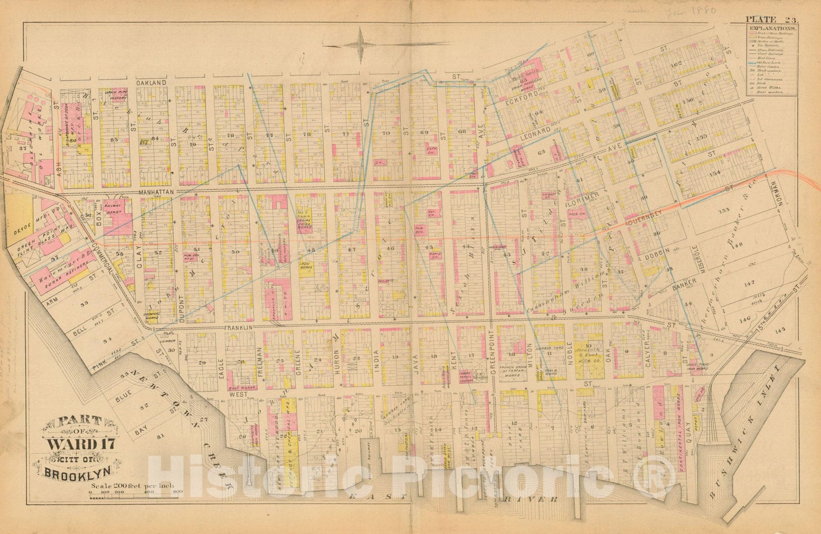 • .Historic Map : Atlas Entire City of Brooklyn Complete in One Volume, Brooklyn 1880 Plate 023 , Vintage Wall Art