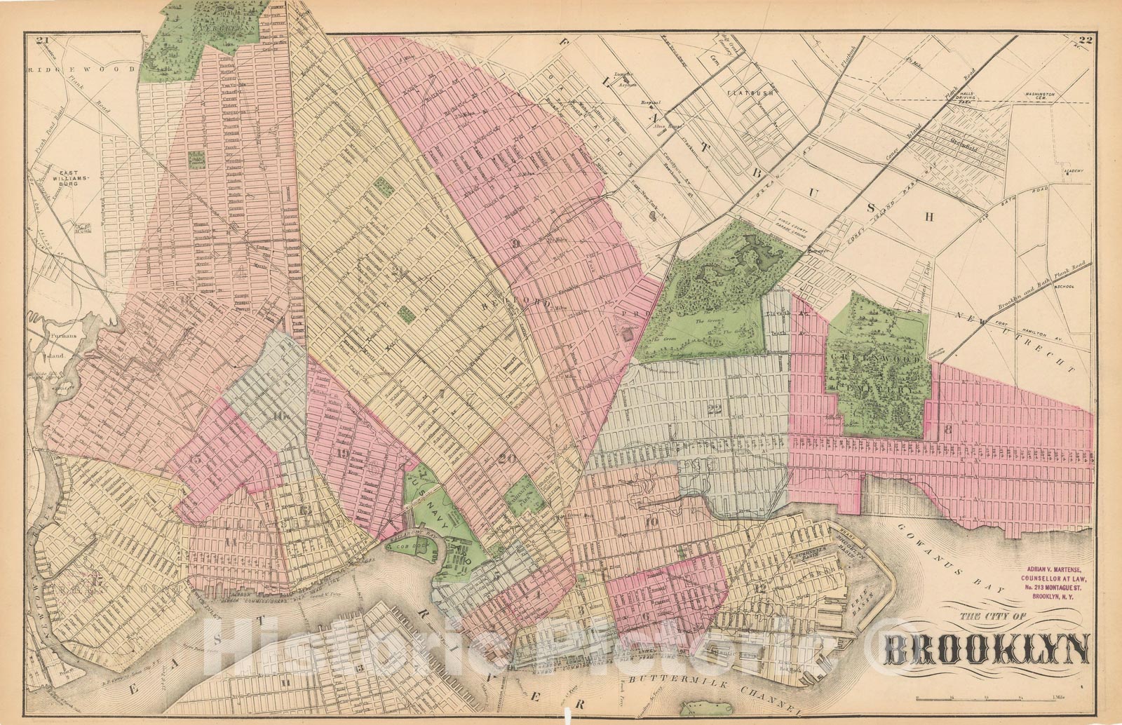 Historic Map : Atlas of Long Island, New York, Brooklyn 1873 , Vintage Wall Art
