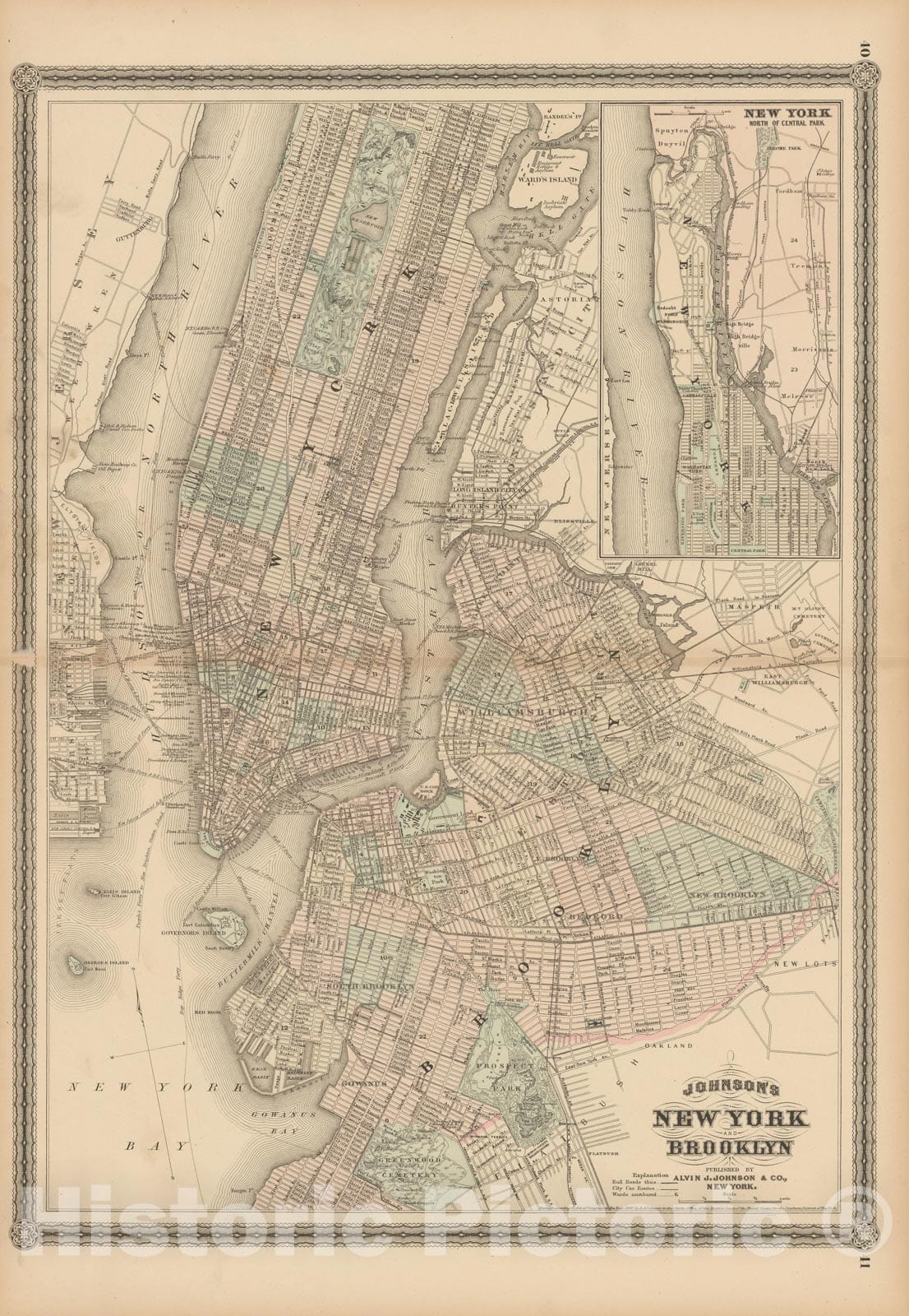 Historic Map : Brooklyn & New York City 1866 , Vintage Wall Art