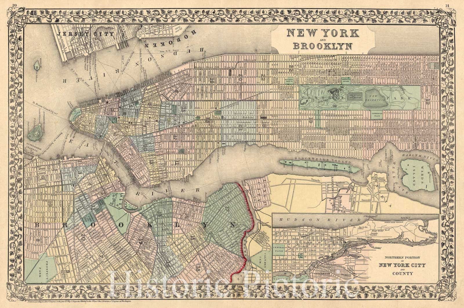 Map : New York, New York 1886, East River front of New York and Brooklyn from the Battery and Red Hook to Blackwell's Island : 1885, Antique Vintage Reproduction