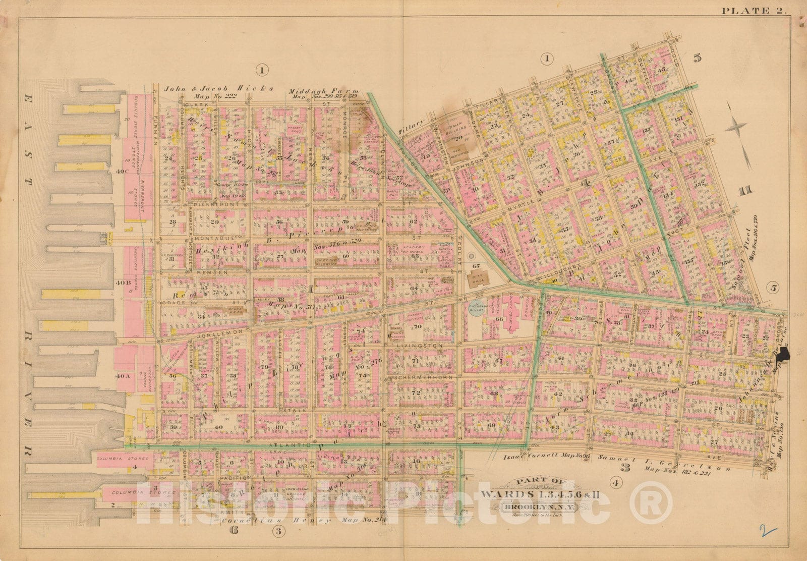 Historic Map : Robinson's Atlas City of Brooklyn, NY, Brooklyn 1886 Plate 002 , Vintage Wall Art
