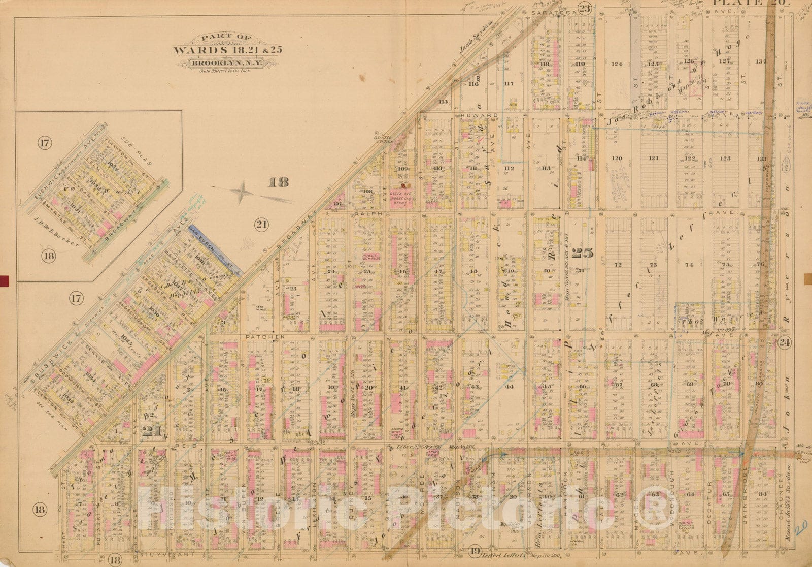 Historic Map : Robinson's Atlas City of Brooklyn, NY, Brooklyn 1886 Plate 020 , Vintage Wall Art