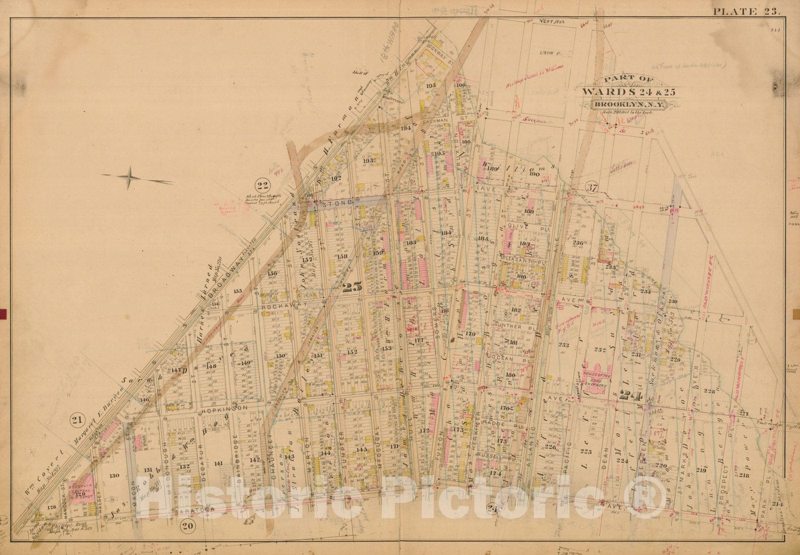 Historic Map : Robinson's Atlas City of Brooklyn, NY, Brooklyn 1886 Plate 023 , Vintage Wall Art