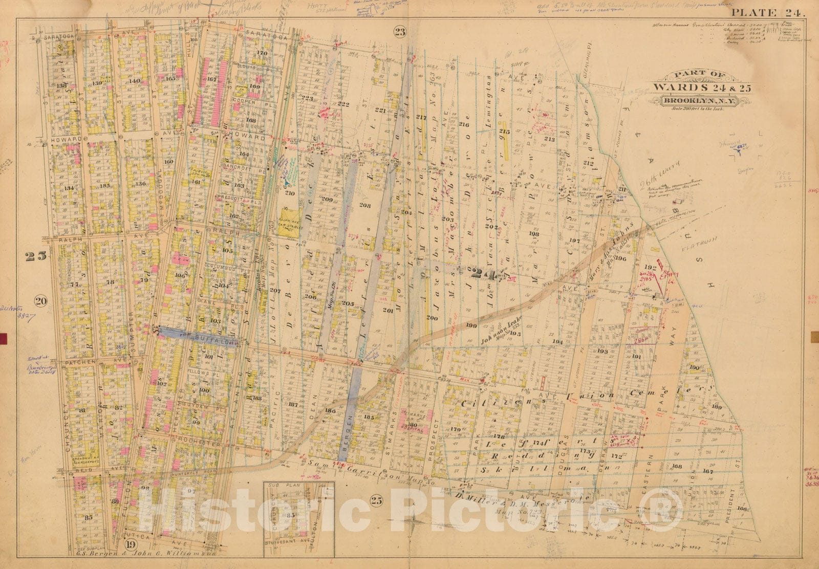 Historic Map : Robinson's Atlas City of Brooklyn, NY, Brooklyn 1886 Plate 024 , Vintage Wall Art