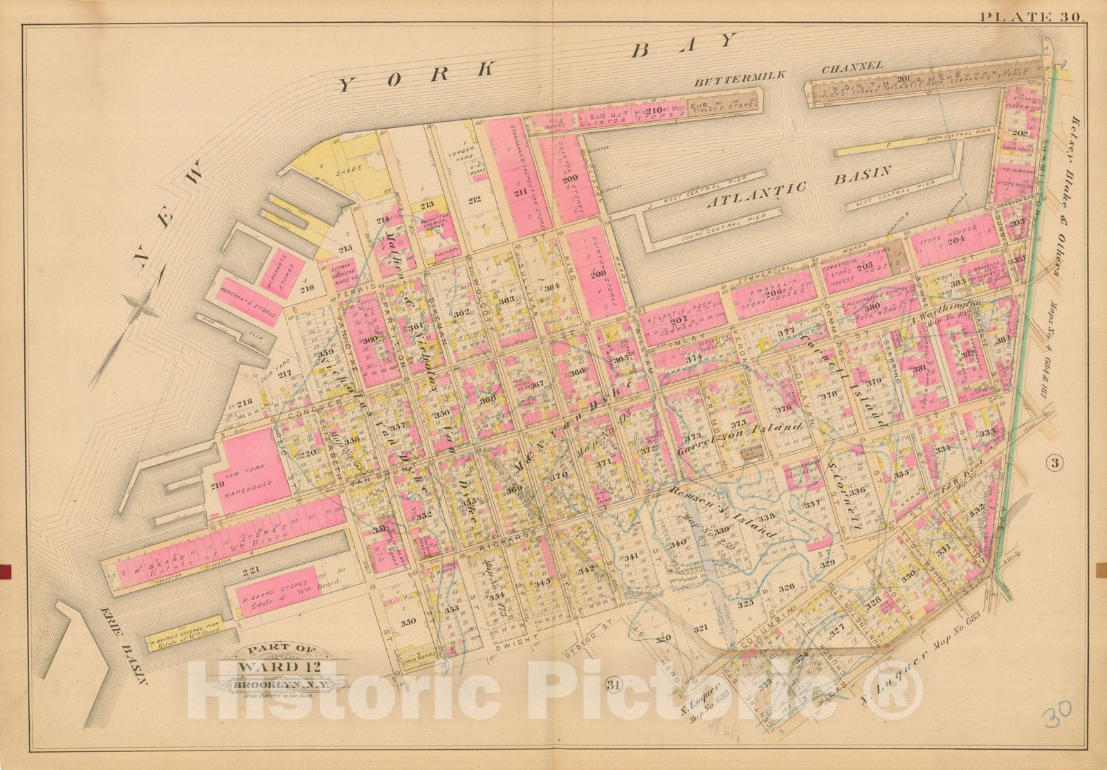 Historic Map : Robinson's Atlas City of Brooklyn, NY, Brooklyn 1886 Plate 030 , Vintage Wall Art