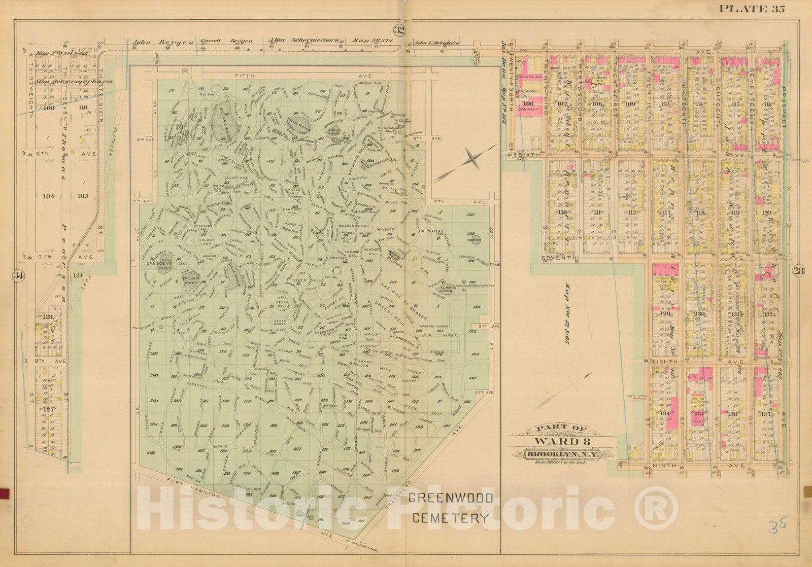 • Historic Map : Robinson's Atlas City of Brooklyn, NY, Brooklyn 1886 Plate 035 , Vintage Wall Art