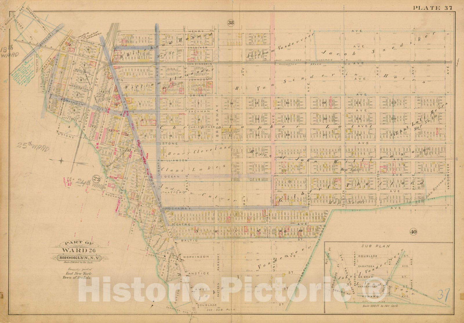 Historic Map : Robinson's Atlas City of Brooklyn, NY, Brooklyn 1886 Plate 037 , Vintage Wall Art