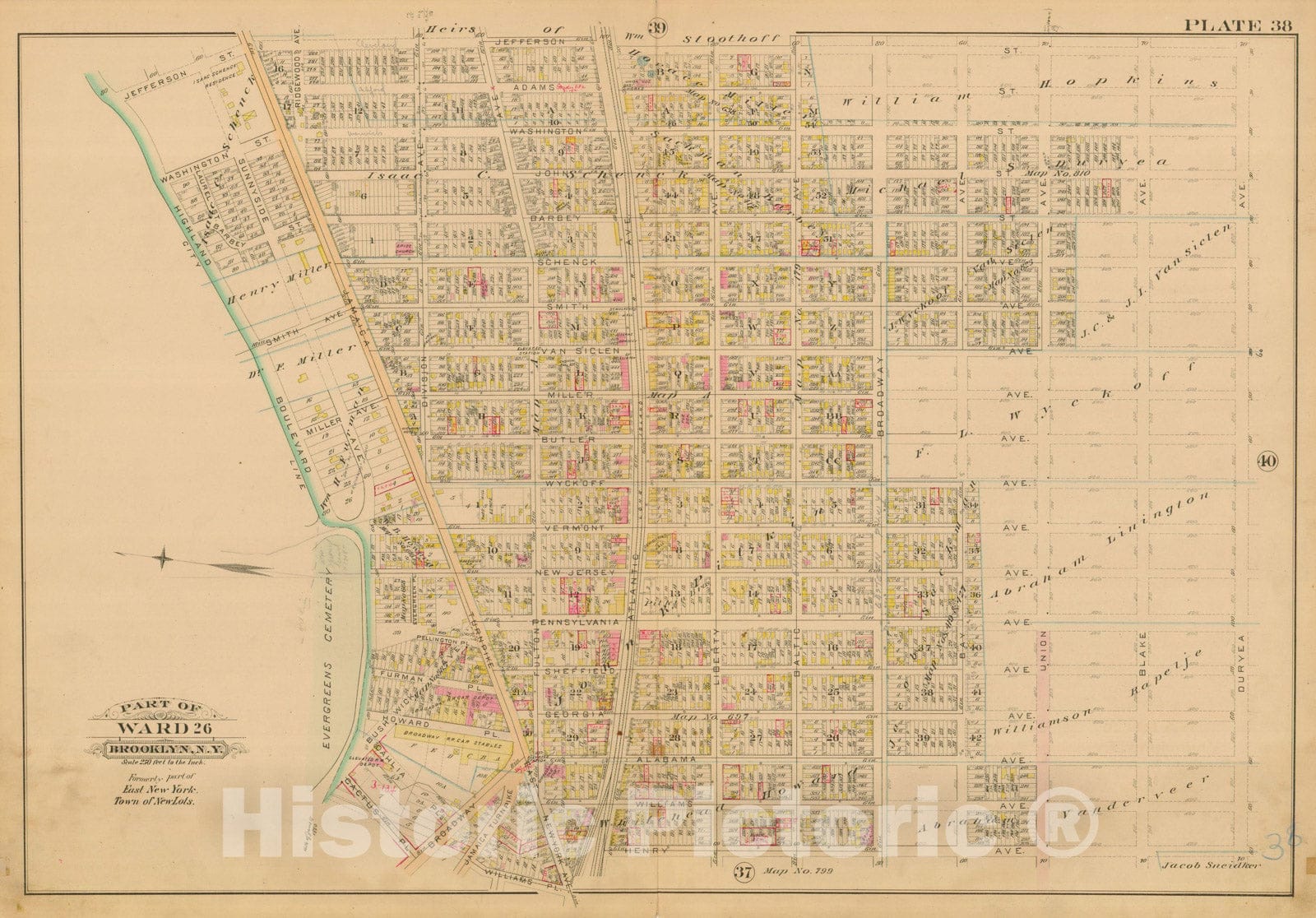 Historic Map : Robinson's Atlas City of Brooklyn, NY, Brooklyn 1886 Plate 038 , Vintage Wall Art