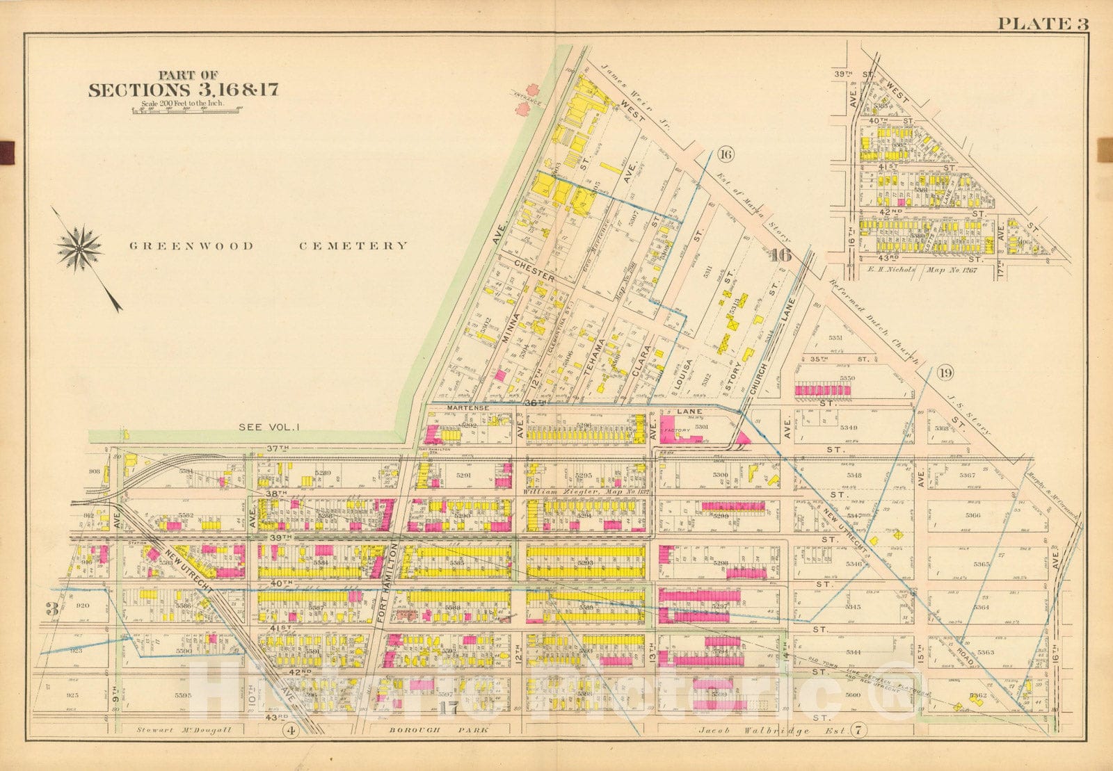 • .Historic Map : Vol. 2, Brooklyn 1907 Plate 003 , Atlas Borough of Brooklyn , Vintage Wall Art
