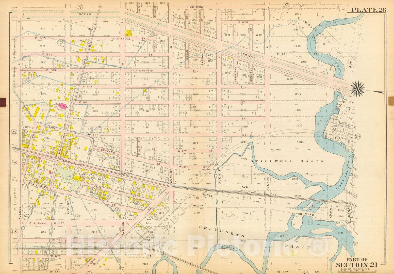 Historic Map : Vol. 2, Brooklyn 1907 Plate 026 , Atlas Borough of Brooklyn , Vintage Wall Art