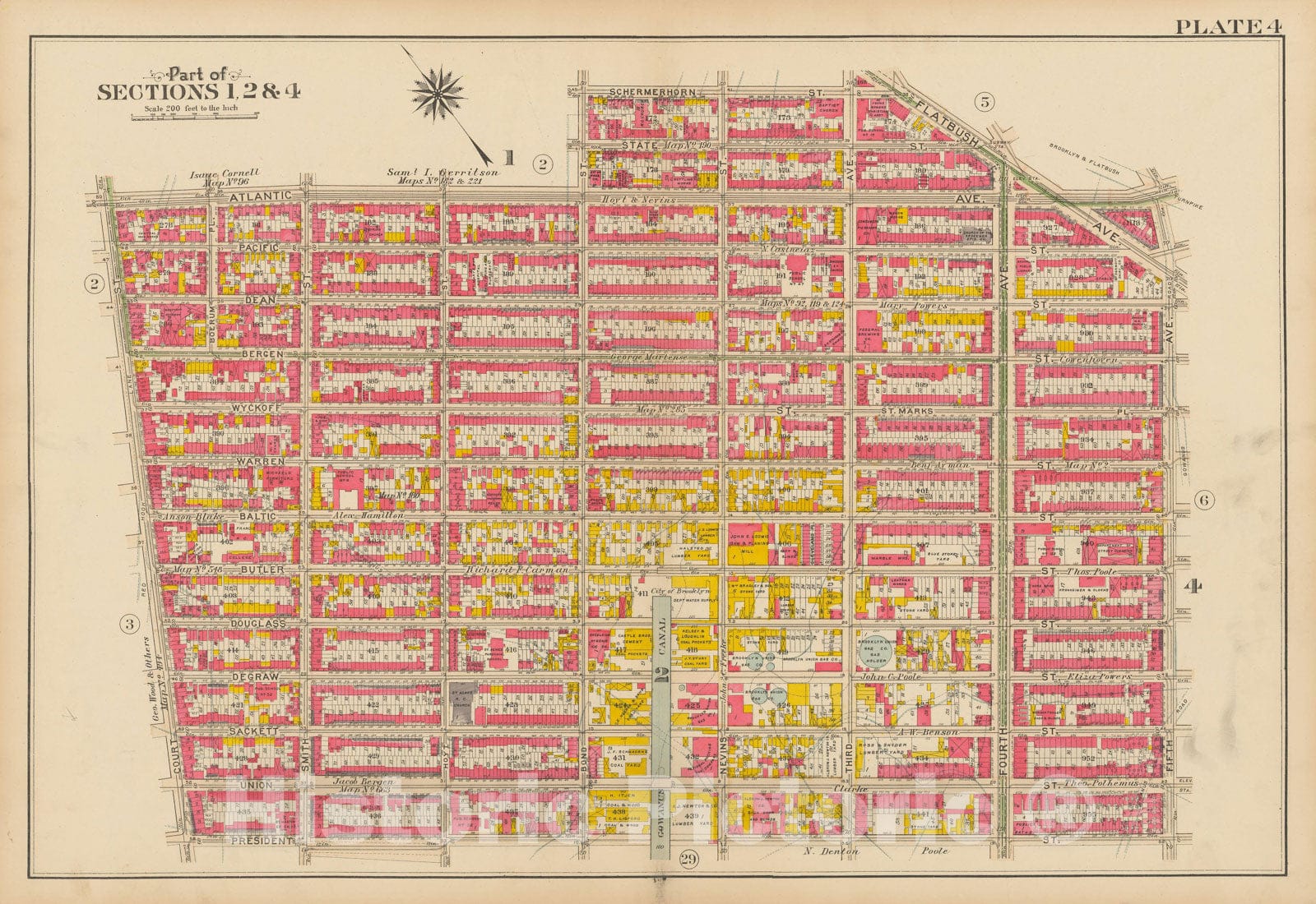Historic Map : Vol. 1, Brooklyn 1908 Plate 004 , Atlas Borough of Brooklyn , Vintage Wall Art