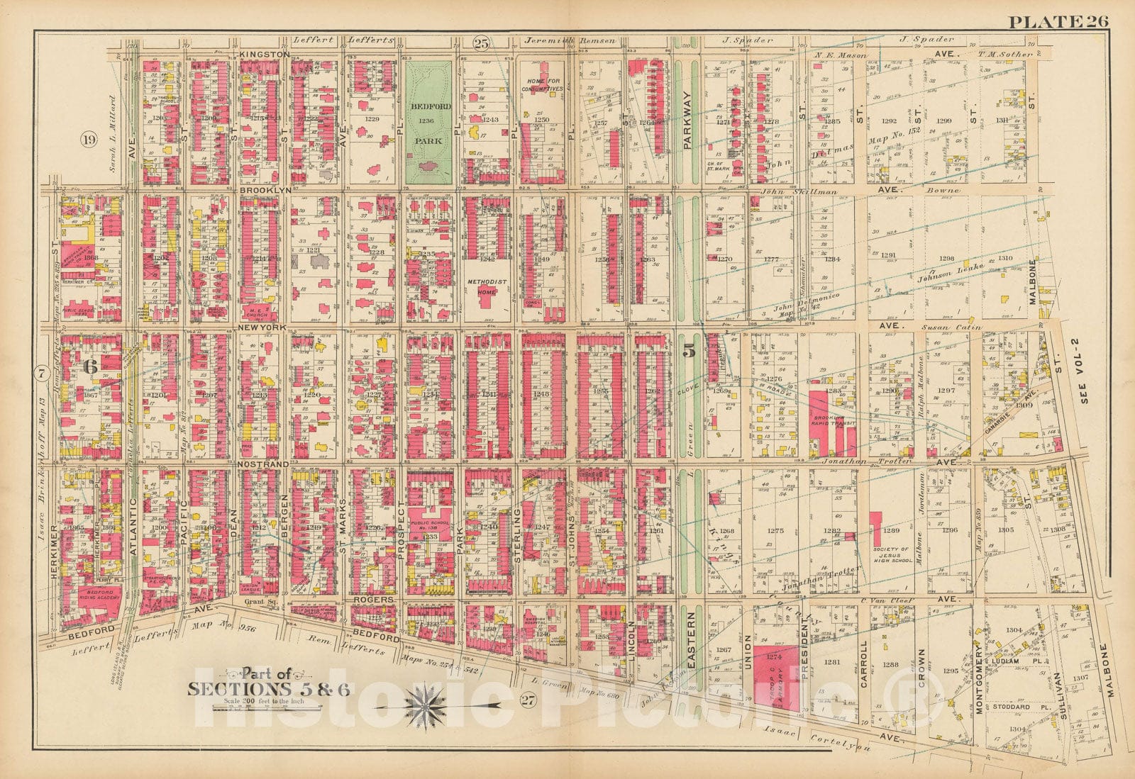 Historic Map : Vol. 1, Brooklyn 1908 Plate 026 , Atlas Borough of Brooklyn , Vintage Wall Art