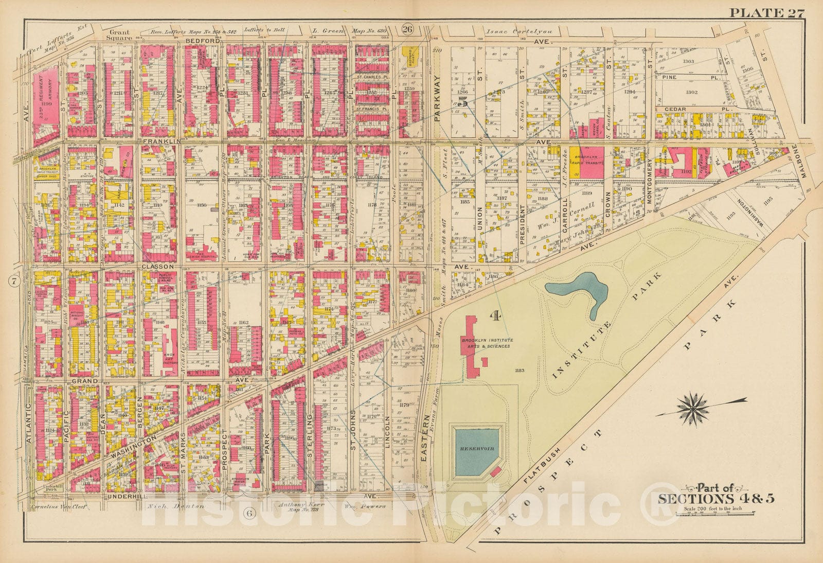 Historic Map : Vol. 1, Brooklyn 1908 Plate 027 , Atlas Borough of Brooklyn , Vintage Wall Art