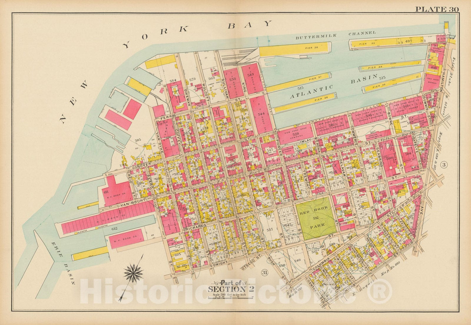 • .Historic Map : Vol. 1, Brooklyn 1908 Plate 030 , Atlas Borough of Brooklyn , Vintage Wall Art