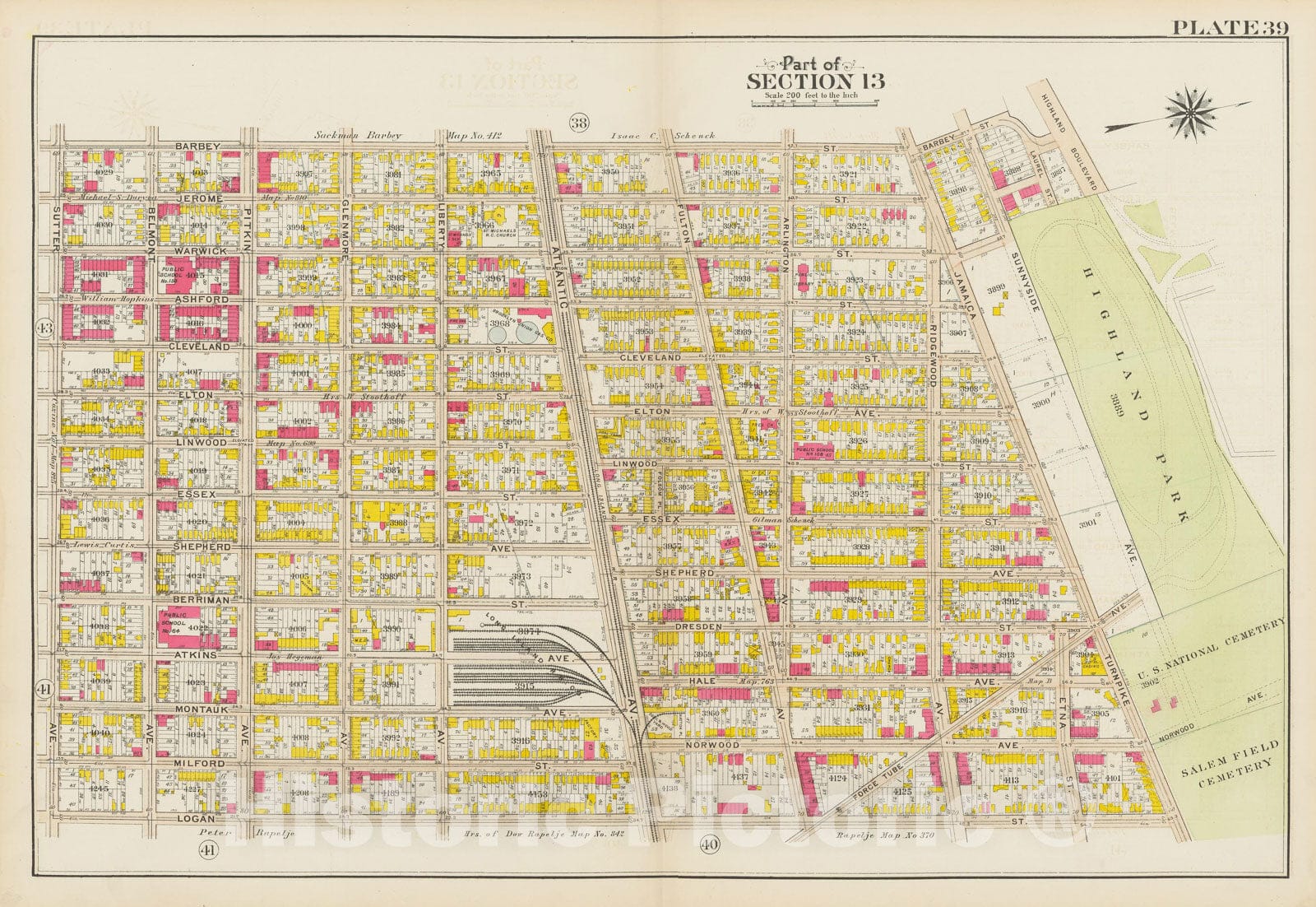 Historic Map : Vol. 1, Brooklyn 1908 Plate 039 , Atlas Borough of Brooklyn , Vintage Wall Art