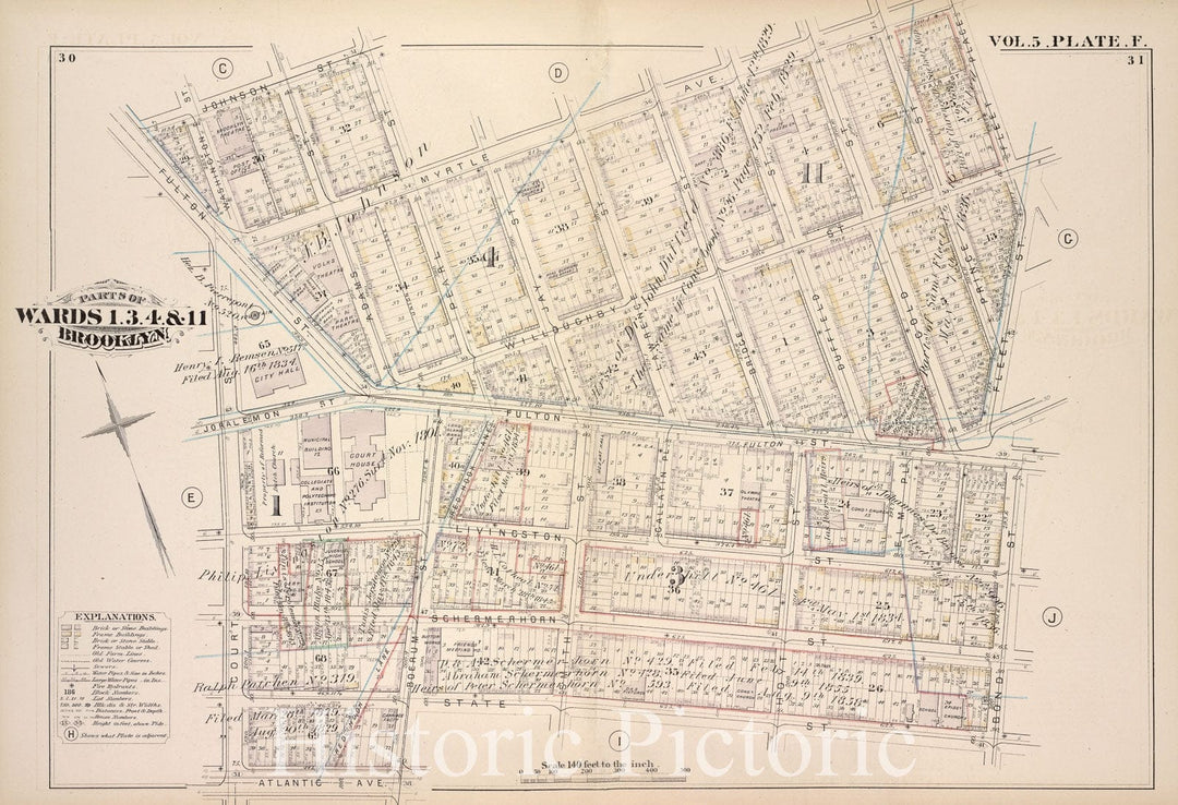 Historic Map - 1880 Brooklyn (New York, N.Y.), Ol. 5. Plate, I, Atlantic St State St Bond St Butler St Court St Harrison St Clinton St; - Vintage Wall Art