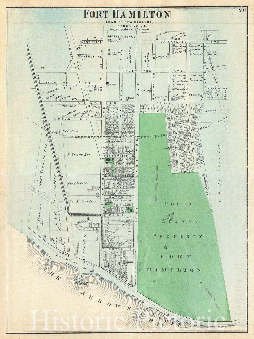 Historic Map : Beers Map of Fort Hamilton, Brooklyn, New York City , 1873, Vintage Wall Art