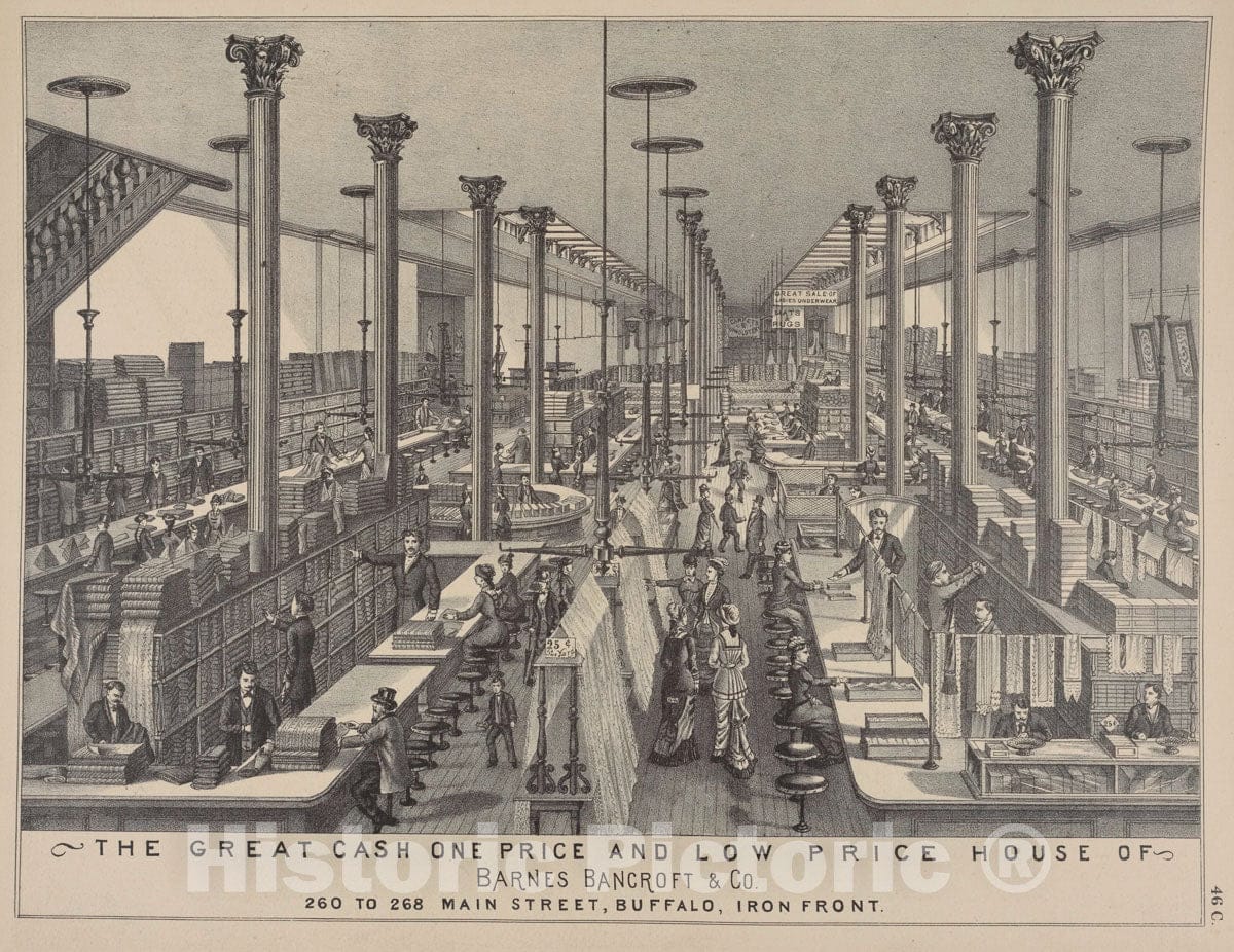 Art Print : 1880, The Great Cash one Price andd House of Barnes Bancroft & Co. 260 to 268 Main Street, Buffalo, Iron Front. - Vintage Wall Art