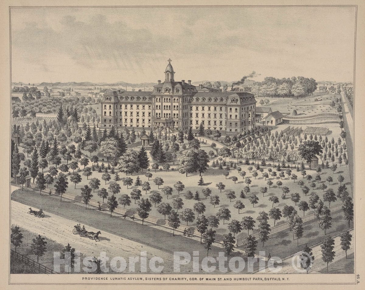 Art Print : 1880, Providence Lunatic Asylum, Sisters of Charity, Cor. of Main St. Humbolt Park, Buffalo, N.Y. - Vintage Wall Art