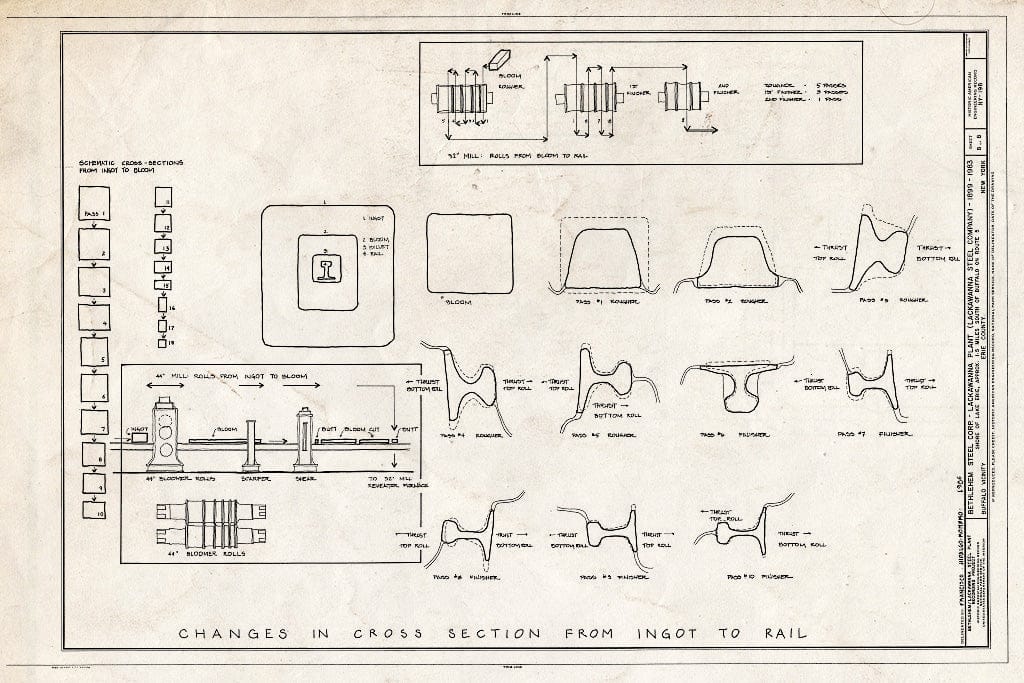 Blueprint Changes in Cross Section from Ingot to Rail - Bethlehem Steel Corporation, Lackawanna Plant, Route 5 on Lake Erie, Buffalo, Erie County, NY