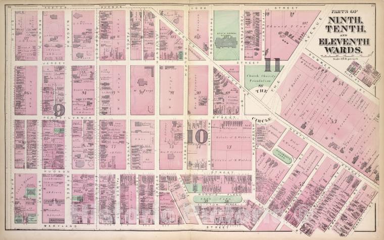 Historic 1872 Map - Parts Of Ninth, Tenth, And Eleventh Wards. - Buffalo (N.Y.Atlas Of The City Of Buffalo, Erie Co, New York - Vintage Wall Art