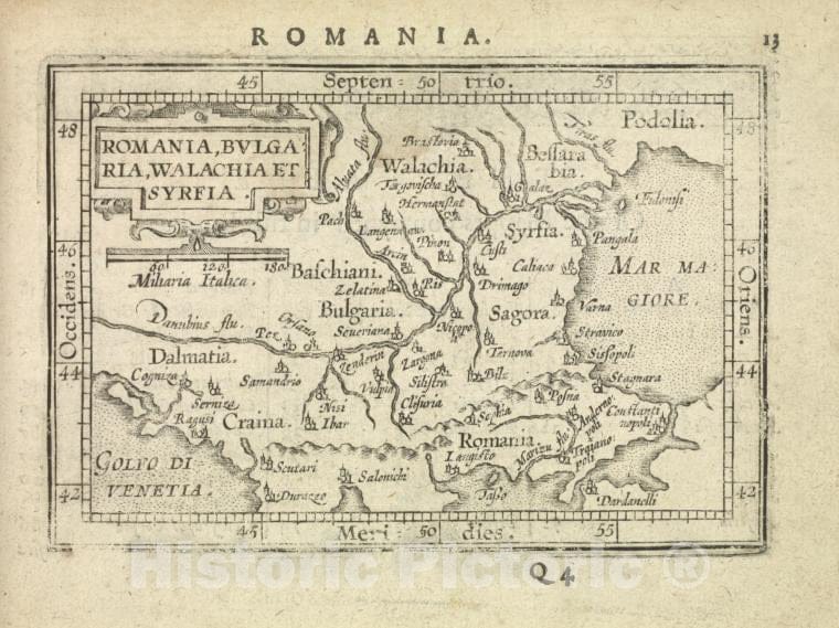 Historic Map - 1603 Europe, Romania, Bulgaria, Walachia Et Syrfia, Abraham Ortelius