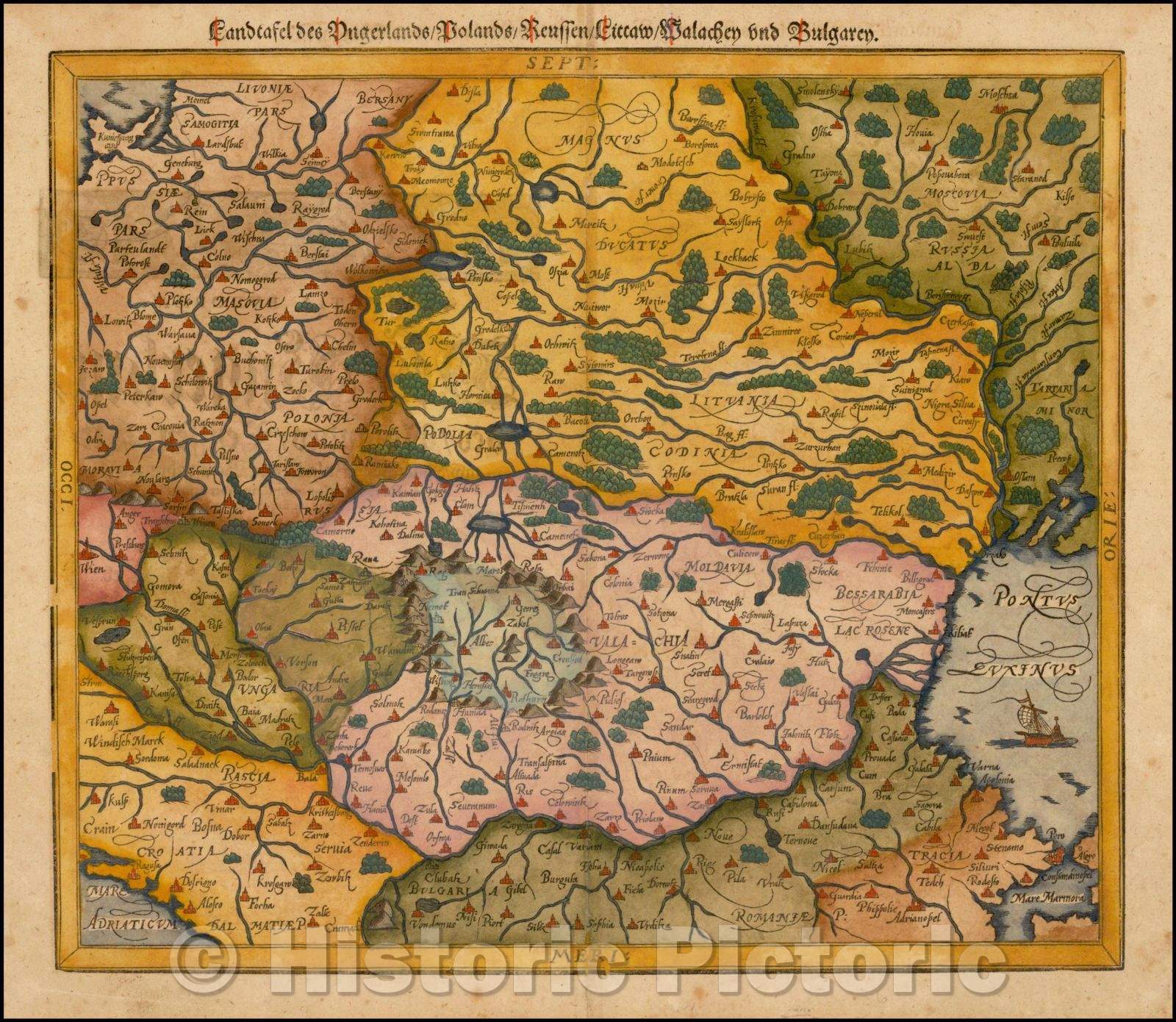 • .Historic Map - Landtafel des Ungerlands, Polands, Reuffen, Littaw, Walachen und Bulgar, Bulgaria, 1578 - Vintage Wall Art