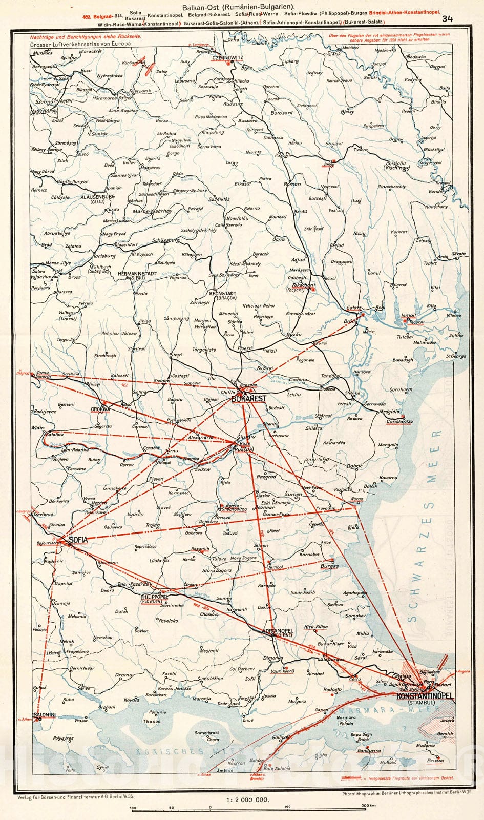 • .Historic Map : (Ukraine - Romania - Bulgaria - Turkey Airline Routes)., 1928, Vintage Wall Decor