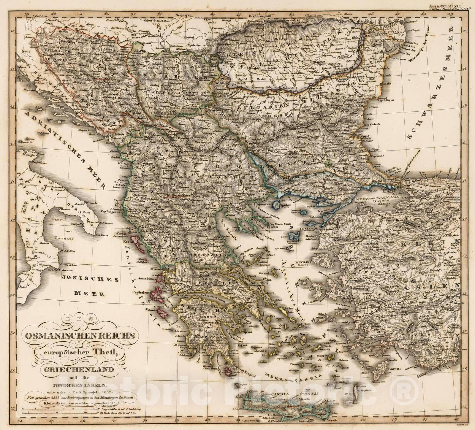 Historic Wall Map : Bulgaria, 1851 Osmanischen reichs europaqischer Theil, Griechenland. (Ottoman Empire in Europe, Greece).