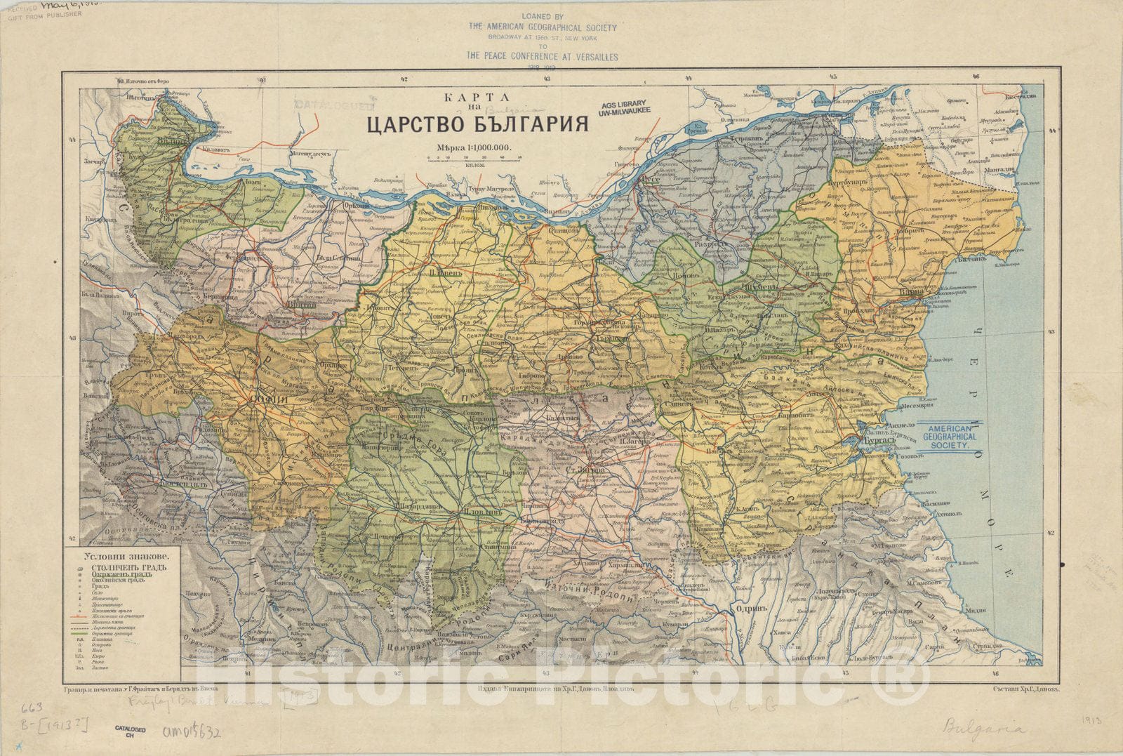 Map : Bulgaria 1913, Karta na tsarstvo Bulgariia , Antique Vintage Reproduction