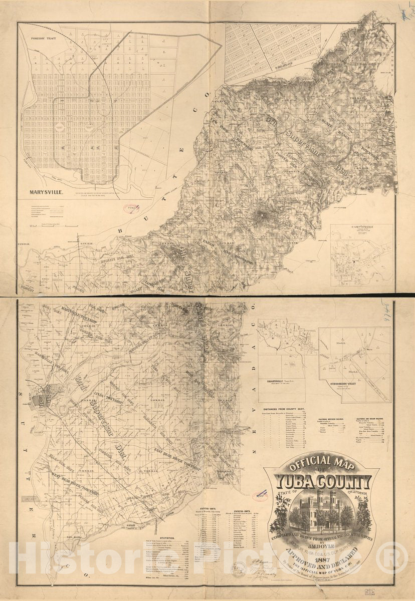 Historic 1887 Map - Official map of Yuba County, State of California : compiled and Drawn from Official recs. and Actual surveys