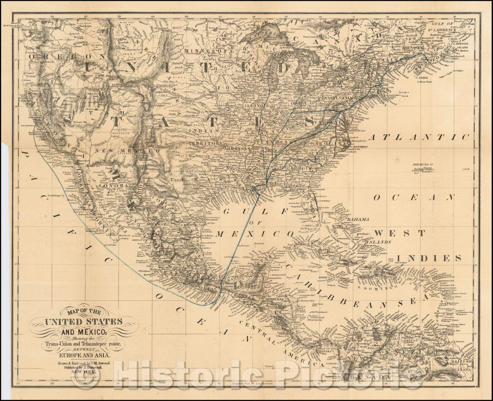 Historic Map - California Gold Rush Rarity Map of the United States and Mexico; Showing the Trans-Union and Tehuantepec route, Between Europe and Asia, 1851 - Vintage Wall Art