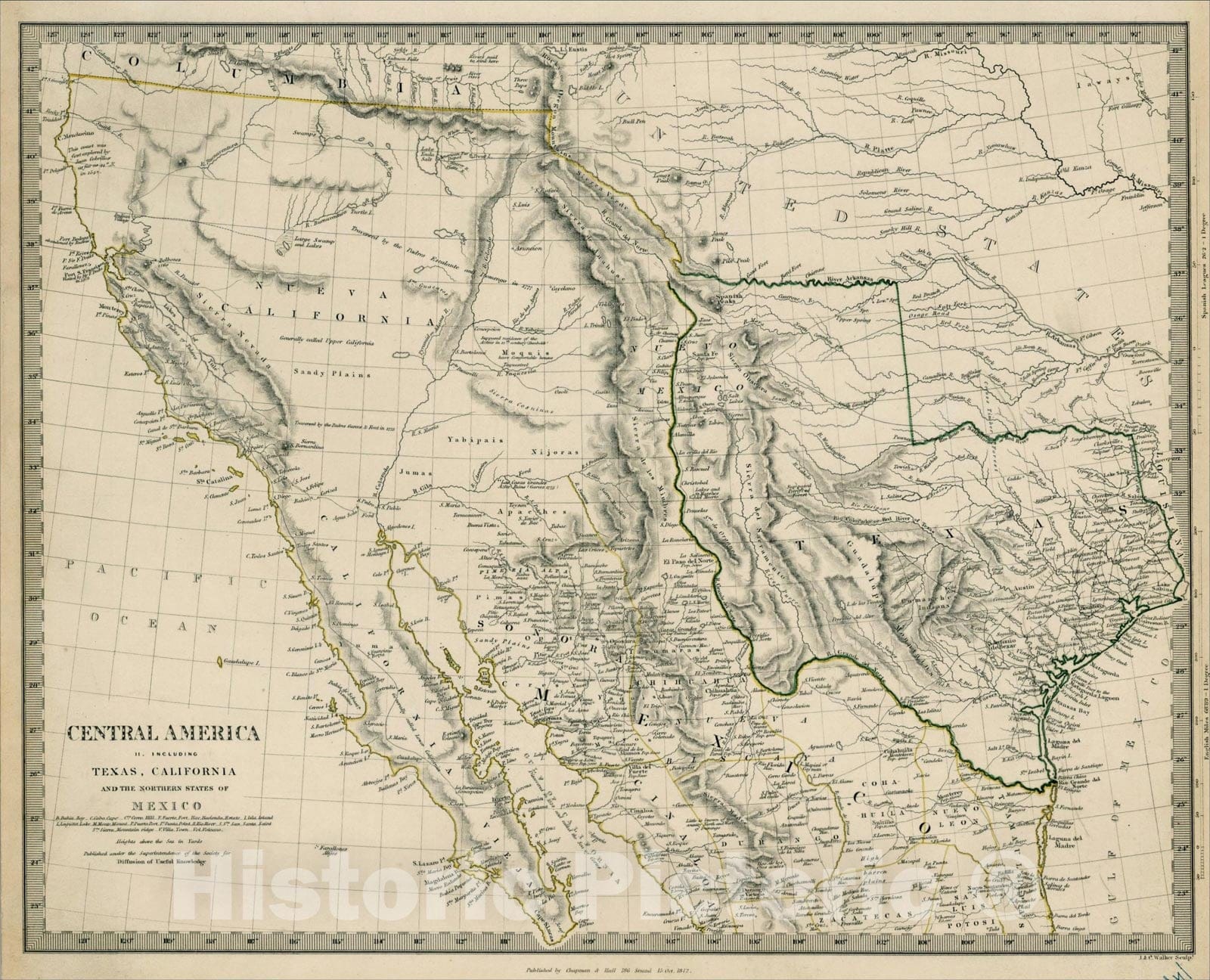 Central America II. Including Texas, California and the Northern States of Mexico, 1842, SDUK, v6, Vintage Wall Art :