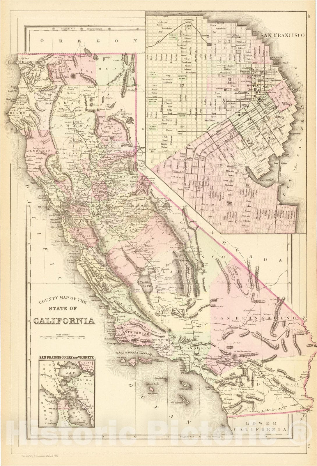 Historic Map : County Map of the State of California (with Large inset plan of San Francisco), 1884, Samuel Augustus Mitchell Jr., Vintage Wall Art