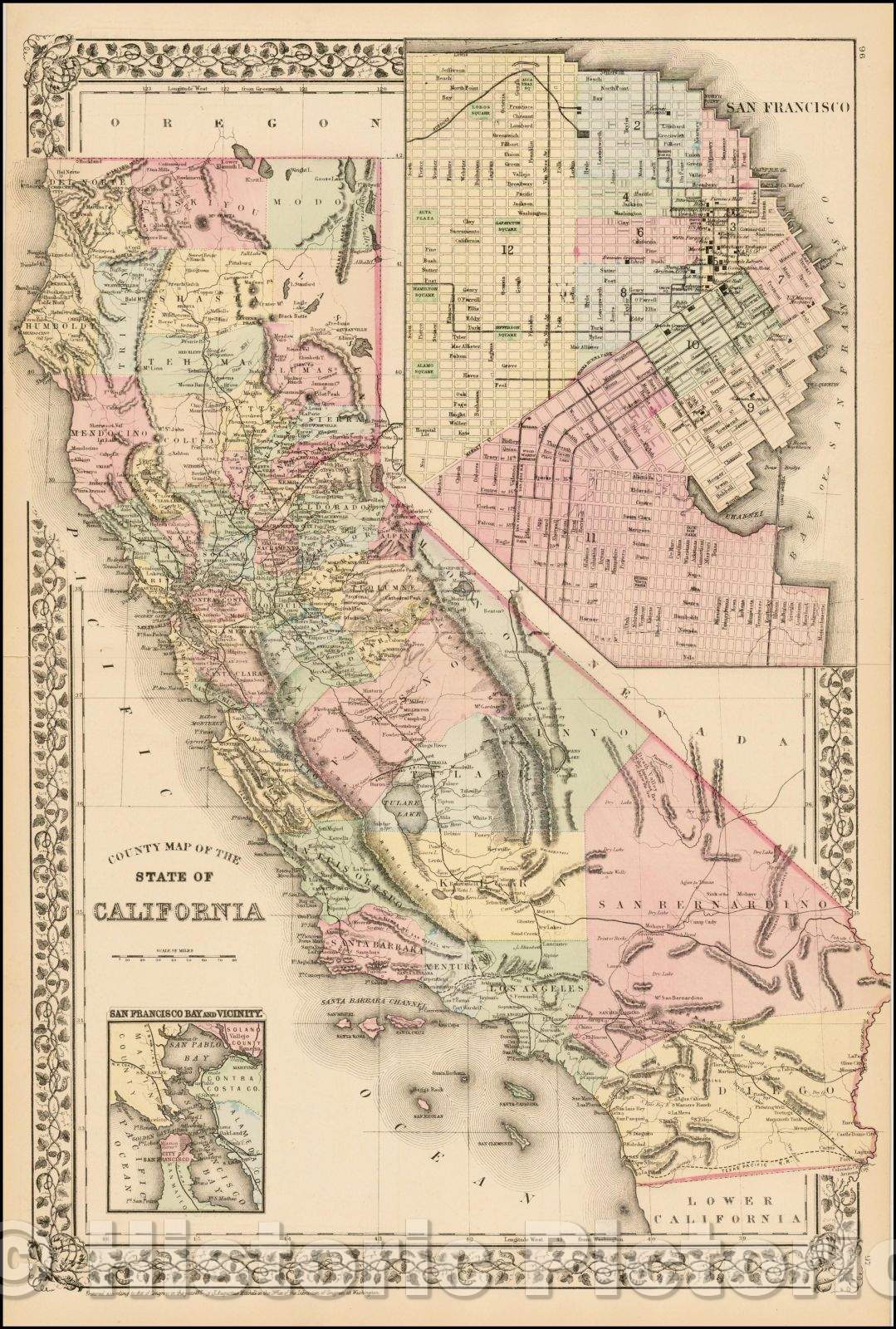 Historic Map - County Map of the State of California (with Large inset plan of San Francisco), 1881, Samuel Augustus Mitchell Jr. v2