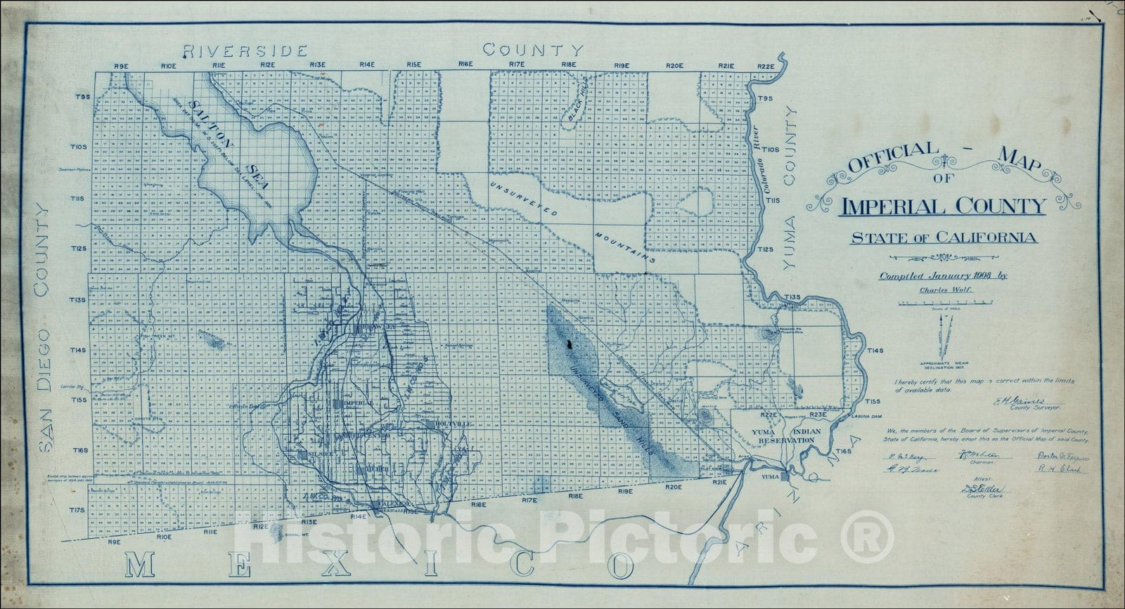 Historic Map : Official Map of Imperial County State of California, 1908, Southern Pacific Railroad Company, Vintage Wall Art