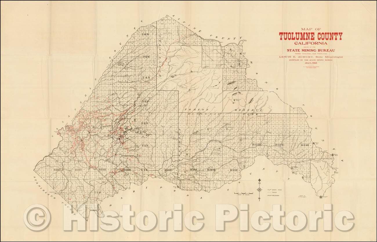 Historic Map - Map of Tuolomne County California Issued, 1904, California State Mining Bureau - Vintage Wall Art