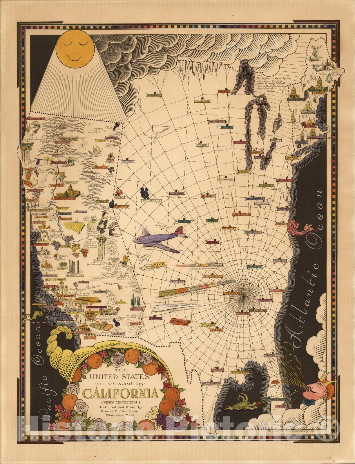 Historic Map : The United States as viewed by California (Very unofficial) 1940 - Vintage Wall Art