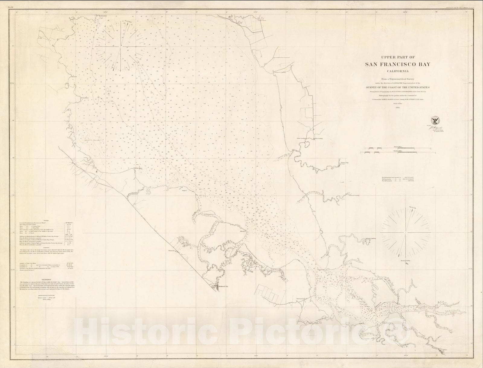 Historic Map : Upper Part of San Francisco Bay California, 1862, United States Coast Survey, Vintage Wall Art