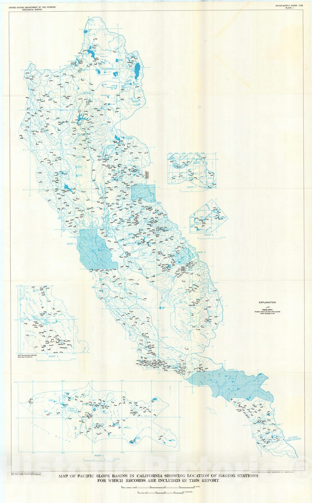 Map : Compilation of records of surface waters of the United States, October 1950 to September 1960, part 11. Pacific slope basins in California, 1964 Cartography Wall Art :