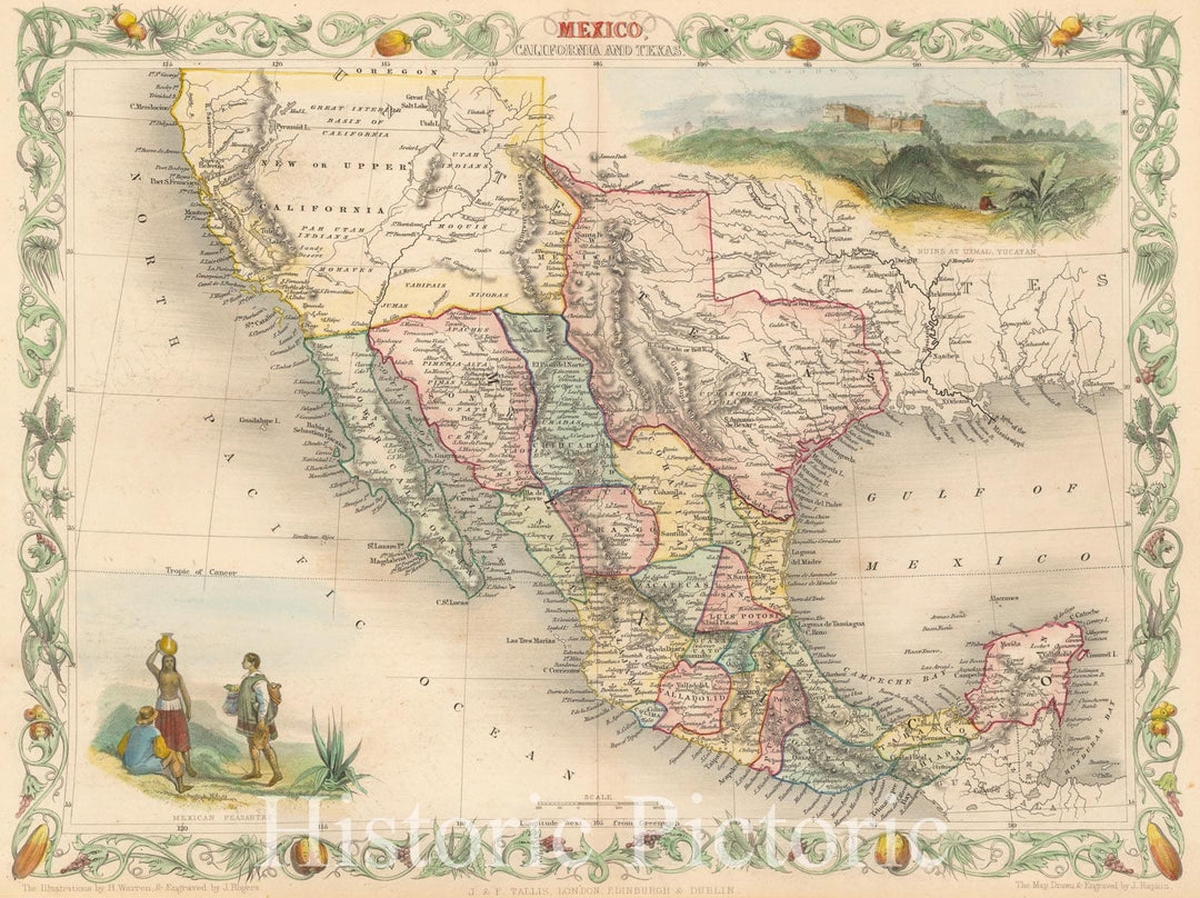Historic Map - Mexico, California and Texas (Rare Early State!), 1849, John Tallis v1