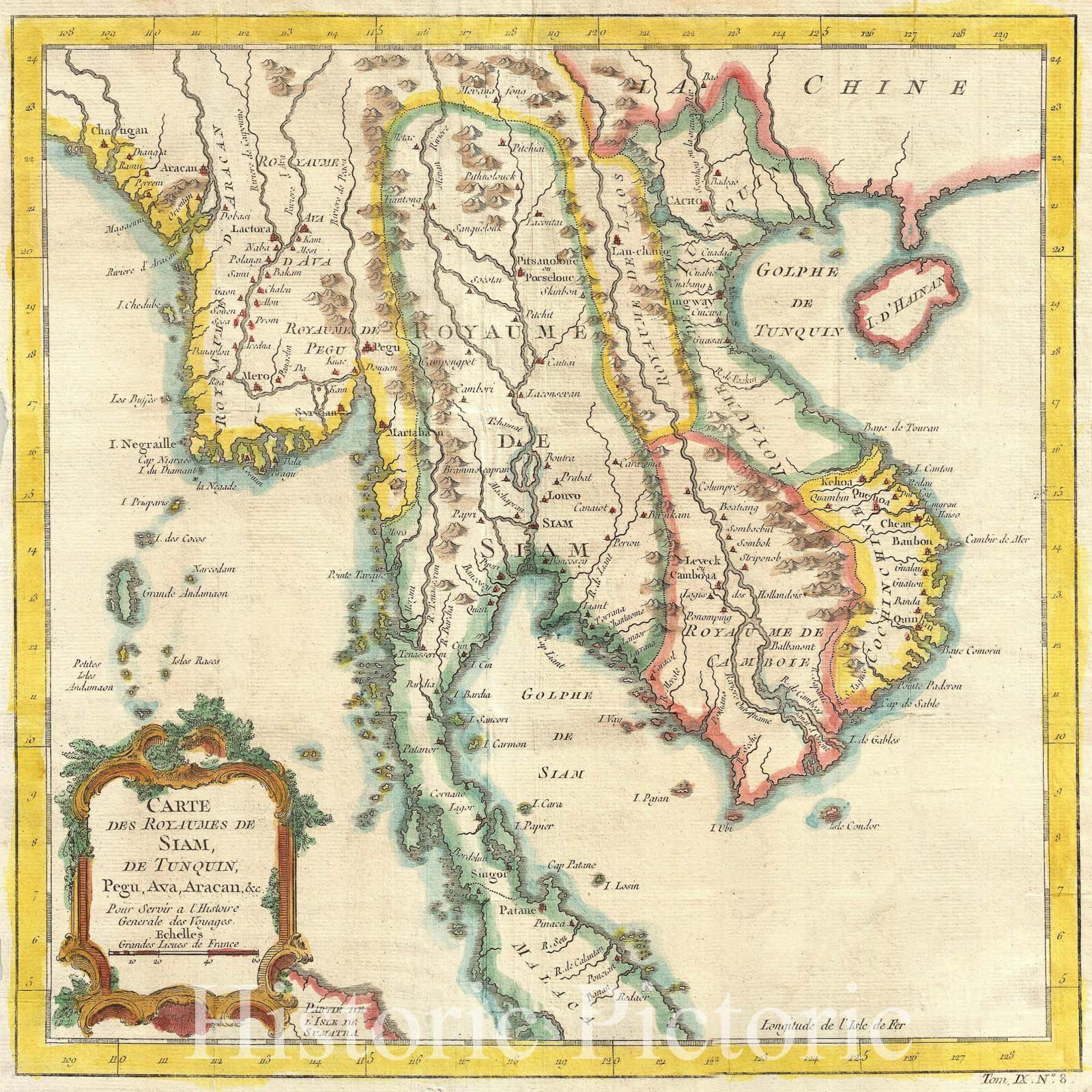 Historic Map : Thailand, Vietnam and Cambodia, Vandermaelen, 1827, Vintage Wall Art