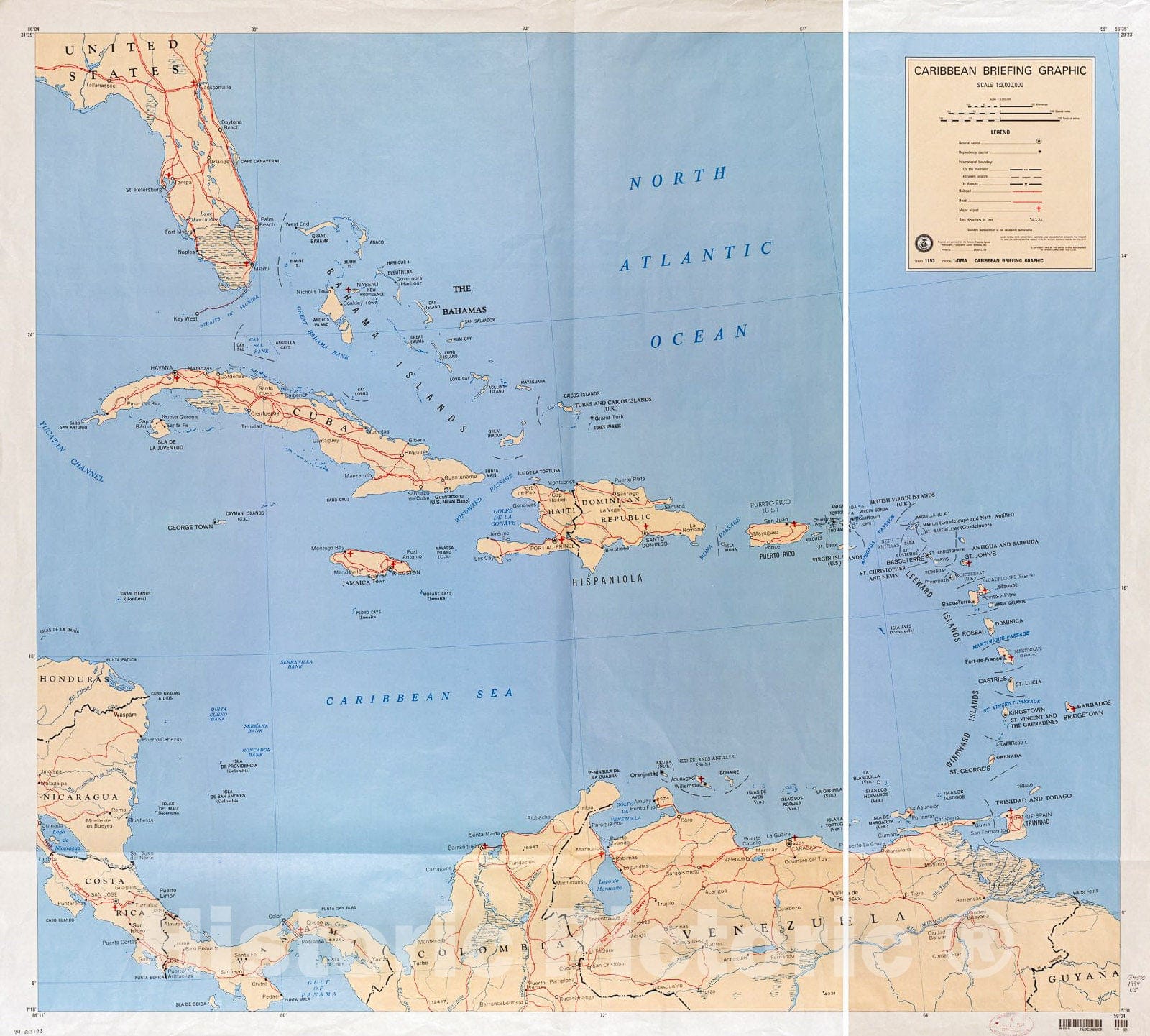 Historic 1994 Map - Caribbean briefing Graphic, Scale 1:3,000,000