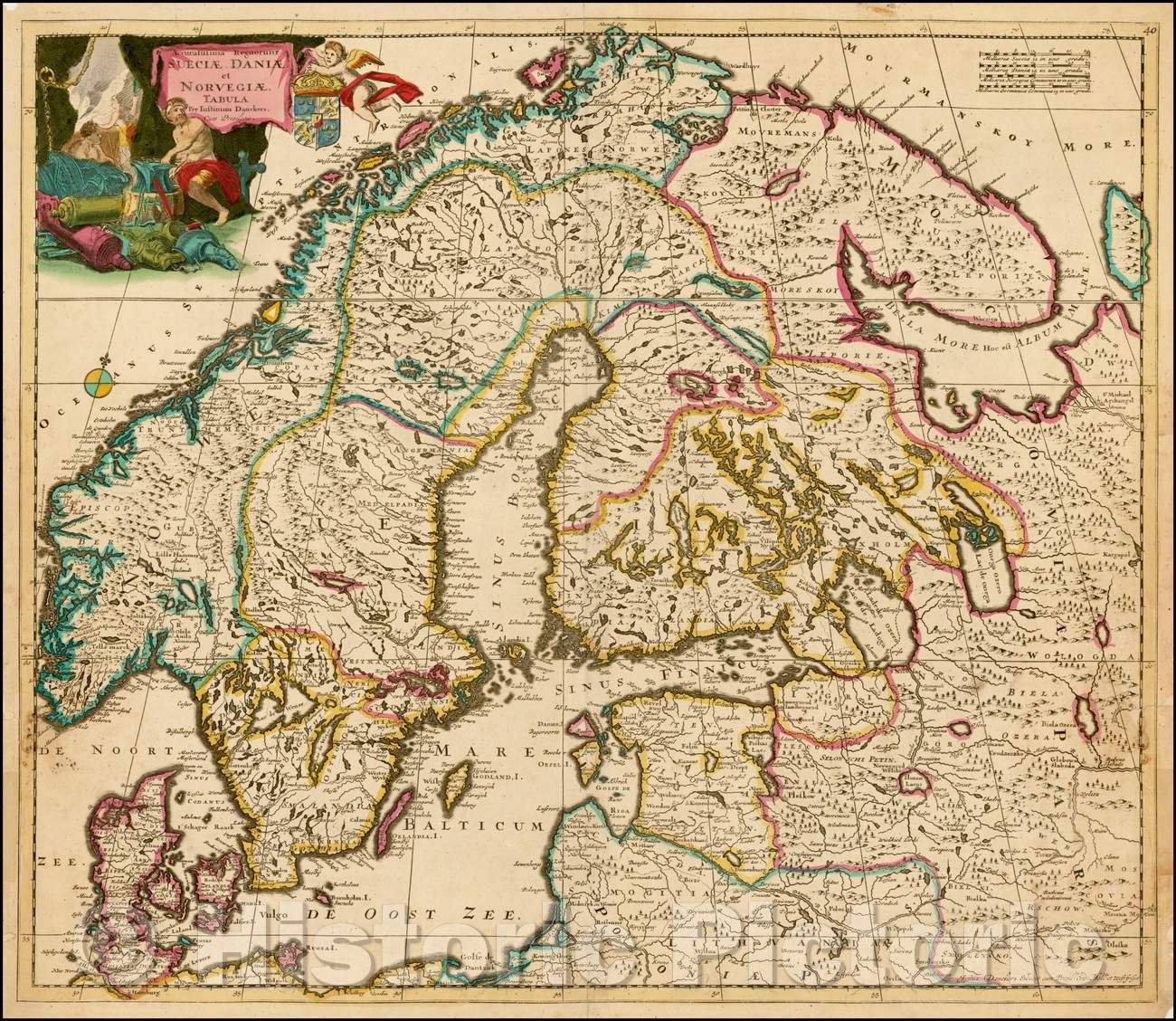 Historic Map - Accuratissima Regnorum Sueciae, Daniae, et Norvegiae. Tabula :: Caribbean, 1696 - Vintage Wall Art