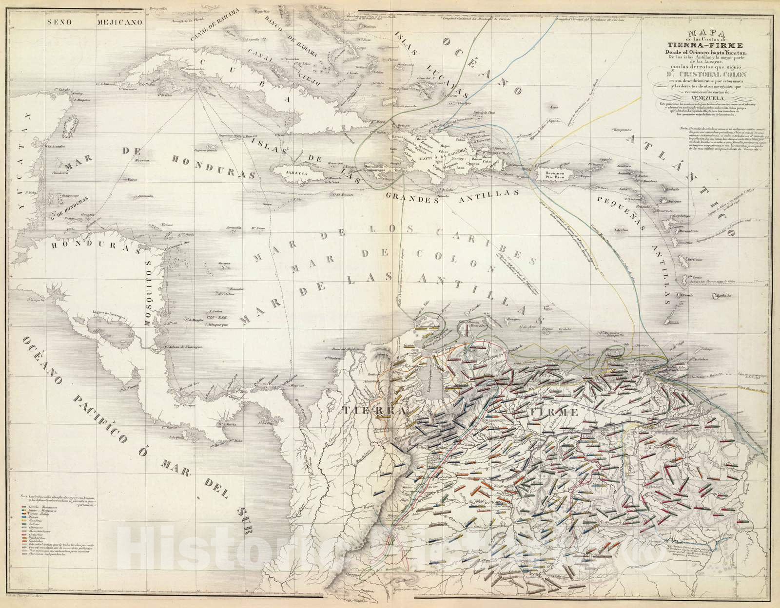 Historic Map : Caribbean Area, South America; West Indies 1840 Mapa de las Costas de Tierra-Firme. , Vintage Wall Art