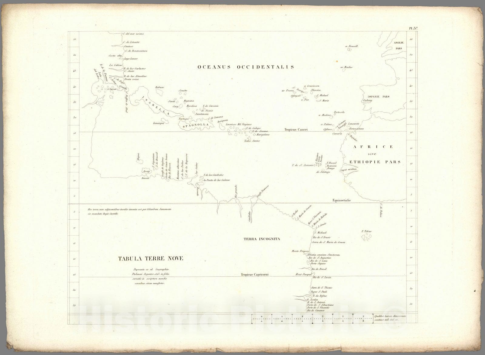 Historic Map : Caribbean, Atlantic Exploration Book, XXXVII. Tabula Terre Nove. Depromta eae ed. Geographiae Ptolemaei Argentor. 1513, in folio. 1834 , Vintage Wall Art