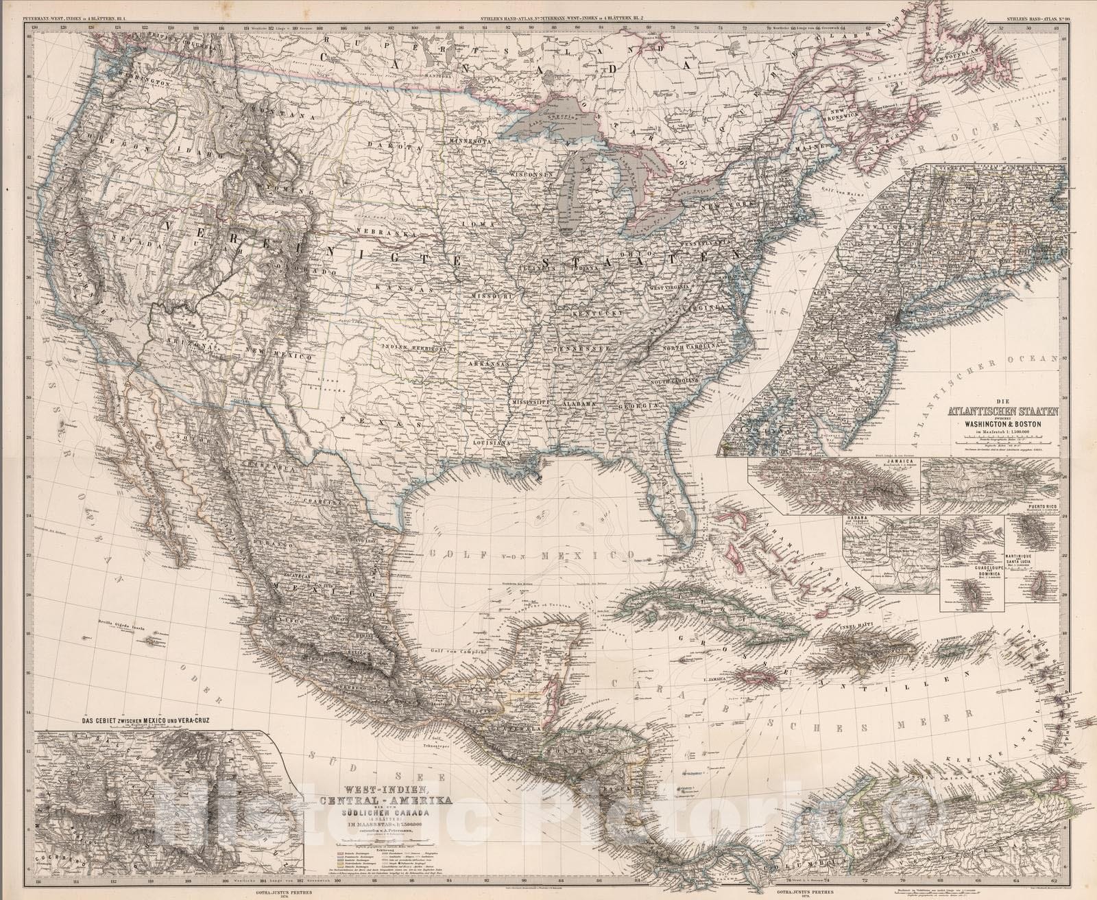 Historic Map : United States, Caribbean, West Indies 1879 Composite: West-Indien in 4 Blattern (West Indies in 4 Sheets) , Vintage Wall Art